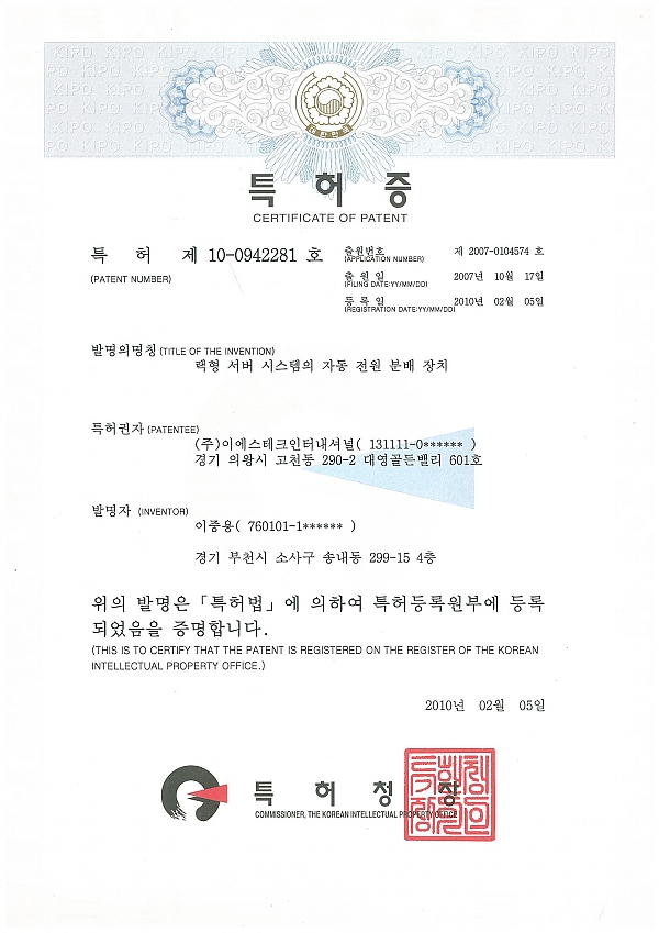 Patent - Automatic Power Distribution Device for Rack type Server System