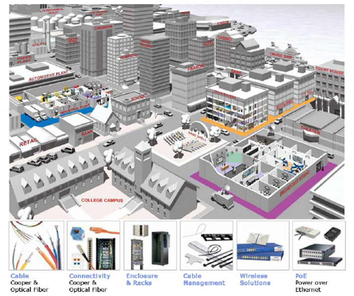 - 고 대역폭의, 고밀도 의 구리 및 광섬유 네트워크 인프라 시스템